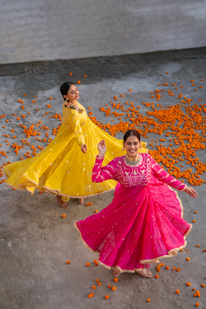 Saffron Yellow Gota Stripes Anarkali Suit Set