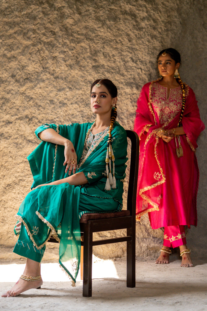 Rooted in old-world craftsmanship and the quiet elegance of "kadhai", Meerahini breathes life into every garment. Each piece is a tribute to the heirloom era, a time when textiles held stories and stitches carried sentiment. With our artisans at the helm, fashion transforms into art, gently reviving the grace of a golden past in every thread.