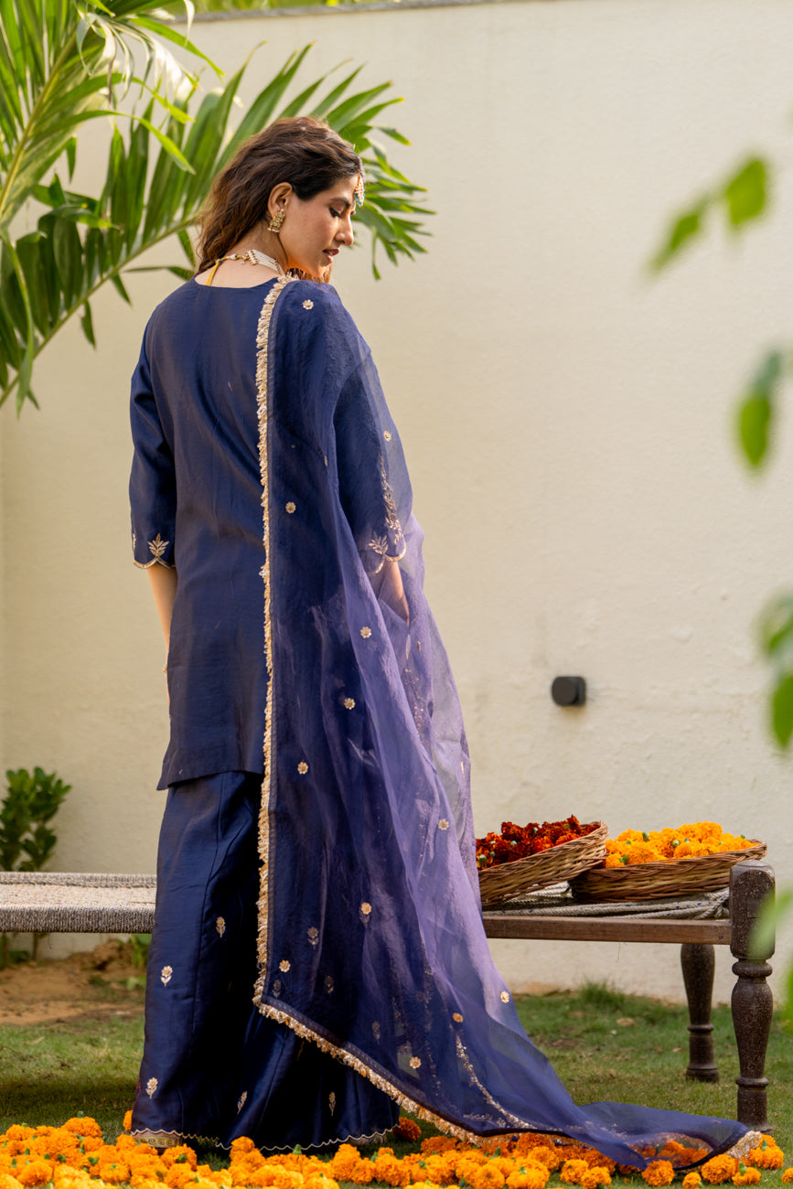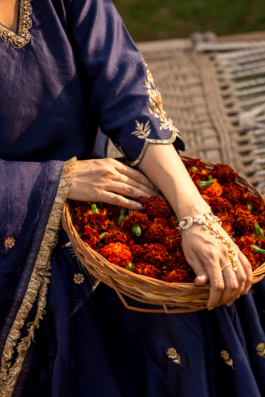 Mid night blue Boota Aari Sharara